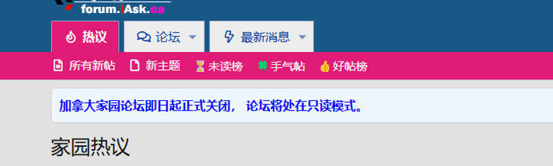 加拿大家园论坛关闭了,现在只有只读模式。这个消息也不意外,之前很长一段时间基本也看不到什么论坛的新帖,但看到白纸黑字写的关闭通告,还是不免觉得遗憾。网站要走AI路线,谋求其他方面大的发展,希望它好。我对AI不是很感冒,还是喜欢有些人情味的东西。如果AI做得太逼真了,分辨不得真人假人,是不是有点感情被欺骗的味道。