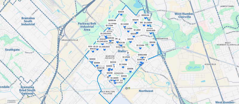 Malton围绕Derry和Airport路的“四角”发展。1850年代,这里像一个小村庄,有杂货店、鞋匠店、小酒店和铁匠铺。1854年Grand Trunk铁路的到来使Malton成为主要粮仓。Malton在1914年被并入为警察村。