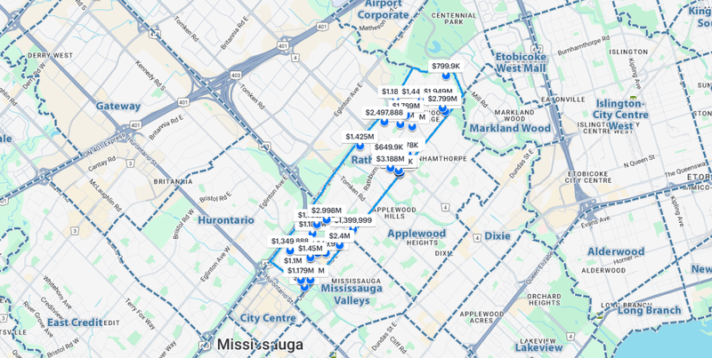 Rathwood社区位于密西沙加市中心东部,东临Etobicoke溪,北接403高速公路,南至Burnhamthorpe路。这个成熟稳定的住宅区拥有丰富的公园绿地、各种类型的住宅、社区基础设施和服务。社区的主要中心位于Dixie路和Burnhamthorpe东路交汇处,该路口周围有宗教集会场所、Rockwood购物中心、高密度住宅、办公楼以及附近的图书馆和社区中心。